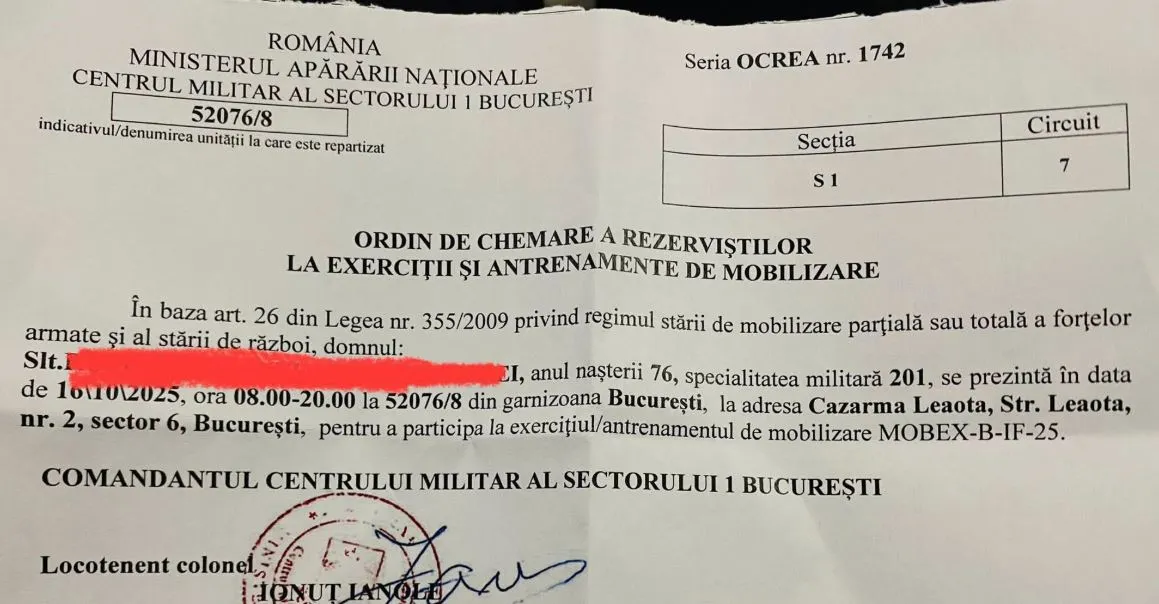 Mai jos puteti vedea cum arata instiintarea primita de rezervisti.